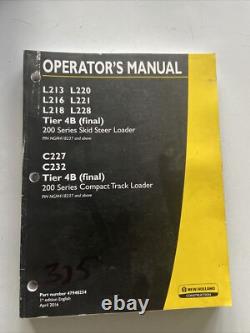 New Holland L213 L223 L215 L225 Skid Steer Loader Operators Manual Ship Priority