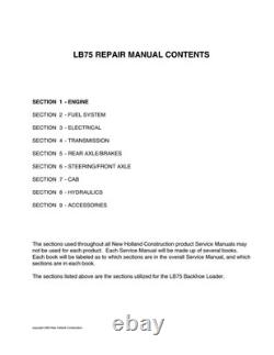 New Holland LB75 Backhoe Loader Service Manual. PDF/USB version is searchable and printable. Printed version is brand new in shrink wrap and will require a binder (not included). Operator's Manuals are bound and do not require a binder. A Service Manual (sometimes referred to as a Repair, Technical, Workshop or Shop Manual) is often large and broken down in to sections for different parts of your equipment.
