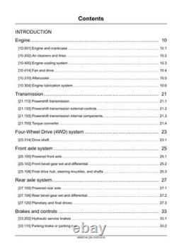 Parts Catalogs cover absolutely every aspect of your machine unless mentioned otherwise. Sometimes, the engine is covered in a separate parts catalog that is written specifically for the engine. Most of the time though, it's included in the main parts catalog. A parts catalog will arm you with the same exact information that your local service center has and includes exploded views of assemblies that are a great help with disassembly and re-assembly.Parts catalogs also include all part numbers for every part of your machine which makes for easy ordering of parts. Some of the printed versions of the older manuals won't have a good print quality, but most are fine. Four-Wheel Drive (4WD) system - 23. Front axle system - 25. Rear axle system - 27.